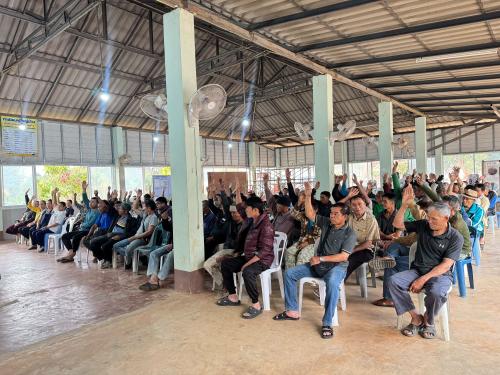 👩นางสาววรรษมน เป็งใจ พัฒนาการอำเภอแม่ลาว พร้อมด้วยเจ้าหน้าที่สำนักงานพัฒนาชุมชนอำเภอแม่ลาว ร่วมประชุมประชาคมสร้างความรู้ ความเข้าใจ และทบทวนแนวทางหมู่บ้าน OTOP นวัตวิถี บ้านห้วยส้านพลับพลา หมู่ที่ 5 ตำบลโป่งแพร่ อำเภอแม่ลาว จังหวัดเชียงราย