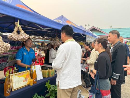 🧑นายชูชีพ พงษ์ไชย ผู้ว่าราชการจังหวัดเชียงราย เป็นประธานในพิธีเปิดฯ พร้อมด้วย นายประเสริฐ จิตต์พลีชีพ รองผู้ว่าราชการจังหวัดเชียงราย นางนิตยา ดีสุวรรณ์ พัฒนาการจังหวัดเชียงราย นายปรีชา ปวงคำ ผู้อำนวยการกลุ่มงานส่งเสริมการพัฒนาชุมชน และหัวหน้าส่วนราชการทั้งในระดับจังหวัดและอำเภอ ผู้บริหารองค์กรปกครองส่วนท้องถิ่น กำนัน ผู้ใหญ่บ้าน ภาคเอกชน และประชาชนในพื้นที่เข้าร่วมงานอย่างพร้อมเพรียง พร้อมทั้งได้เยี่ยมชมสถาปัตยกรรม วัดห้วยส้านพลับพลา เยี่ยมชมพระราชกรณียกิจของพระราชชายาเจ้าดารารัศมี และเยี่ยมชมผลิตภัณฑ์สินค้า OTOP ของดีของเด่นแม่ลาว อาทิเช่น วิสาหกิจชุมชนนามว้า วิสาหกิจชุมชนสุรากลั่นฐิตินันท์ วิสาหกิจชุมชนผู้ปลูกอ้อยอินทรีย์ กลุ่มผ้าปักหอพลับพลา ผ้าพิมพ์ลาย การออกบูทของศูนย์เรียนรู้โคกหนองนา (สวนภูตาด) ม.17 ต.ดงมะดะ ตลอดจนการออกบูทนิทรรศการจุดสาธิตการเพาะเลี้ยงผำของมหาวิทยาลัยเทคโนโลยีราชมงคลล้านนา เชียงราย
